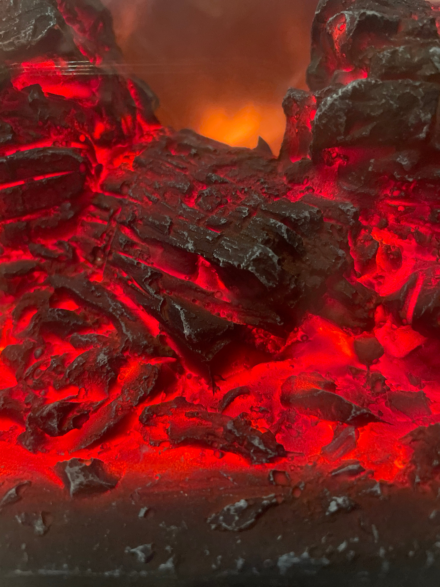 A close-up image shows a textured, rock-like surface illuminated with intense red light. The surface is a mix of dark, gray, and black tones, with crevices and irregular shapes highlighted by the red…read more