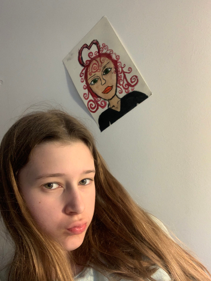 The scene depicts a young female indoors within the Vozdovac Urban Municipality, Serbia. The female, of apparent adolescent age, has long, straight, light brown hair with a central parting and light-c…read more