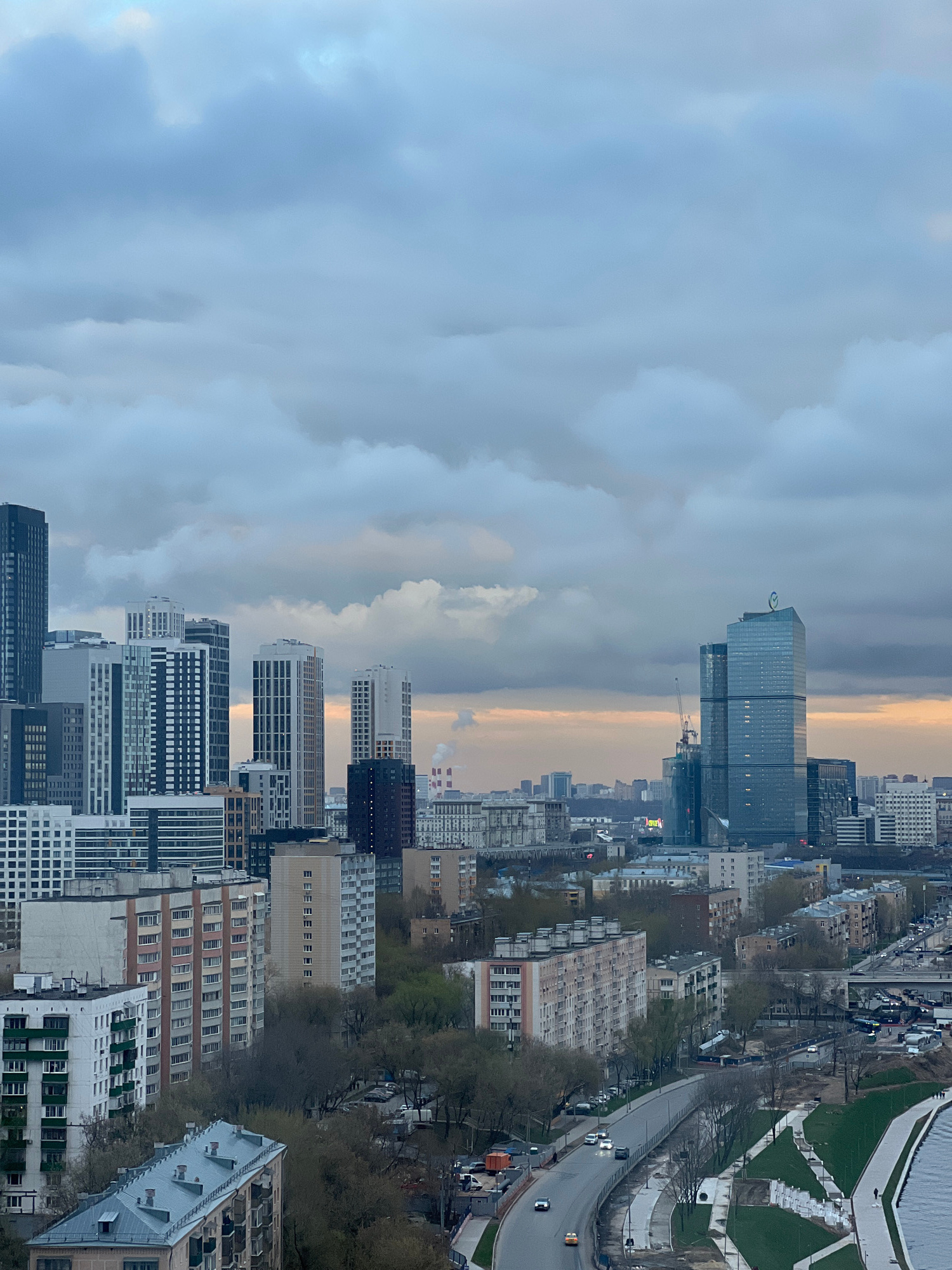 The image shows a cityscape under a cloudy sky, possibly taken from a high vantage point. The buildings are a mix of residential and commercial structures, with varying heights and architectural style…read more