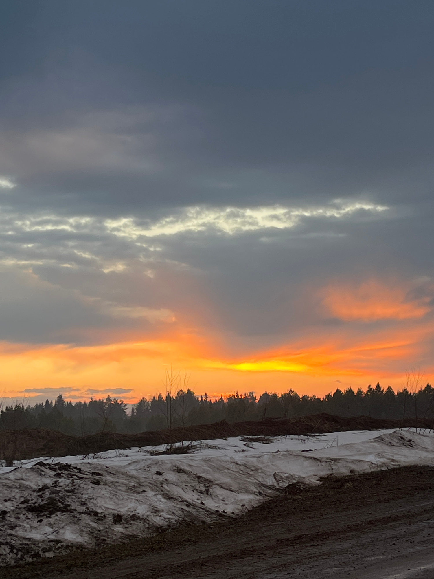 The image captures a landscape, likely in the vicinity of Kamennyi Kliuch, Russia, based on the presence of a wintry field covered with snow and dirt. On the right side of the image is a field, mostly…read more