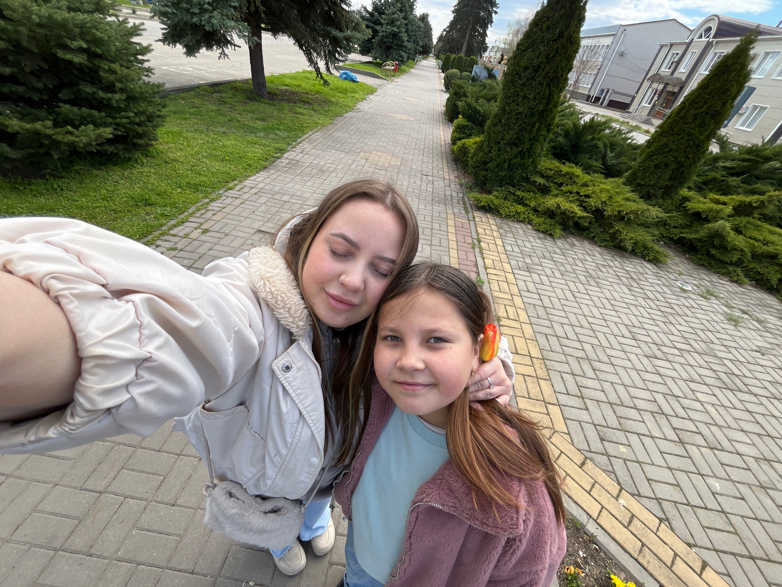 Two young women are pictured outdoors, likely in Novopokrovskaya, Russia. They are positioned head-to-head, close together, suggesting a selfie being taken by one of them. The person on the left wears…read more