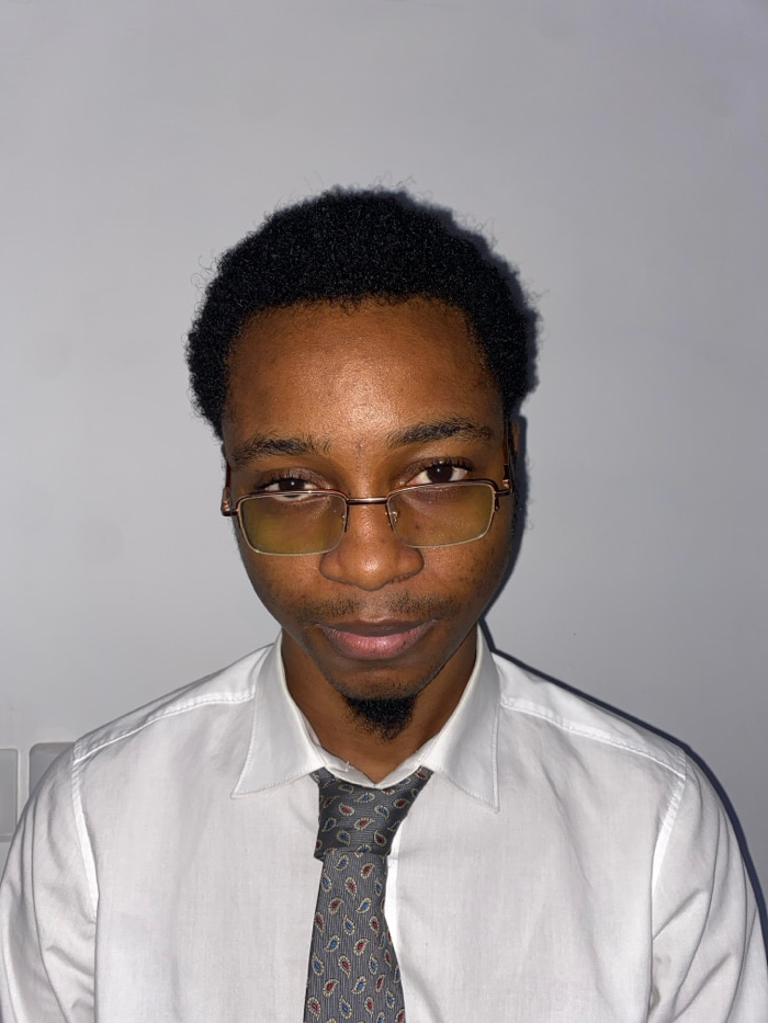 A man wearing glasses, a white shirt, and a patterned tie is shown. He has short black hair and a slight beard. The lighting appears to be studio-like. The background is plain and light. The image app…read more