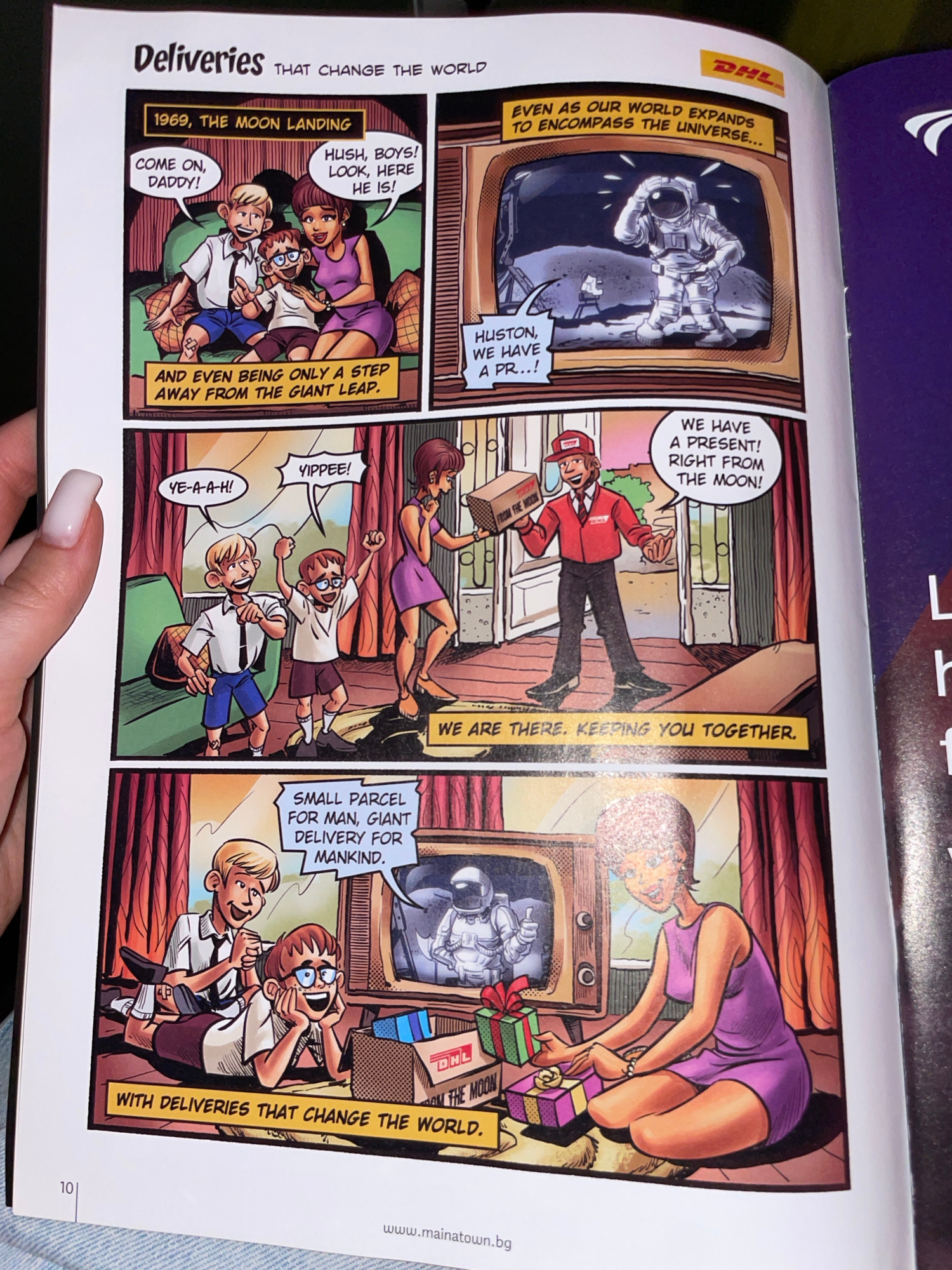 The image is a page from a comic book, titled "Deliveries THAT CHANGE THE WORLD", number 10. It depicts a series of comic panels illustrating a narrative related to deliveries and the moon landing in…read more