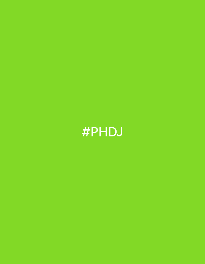 The image displays a solid, vibrant lime green background (#77e42d or similar hue). Centered horizontally and positioned slightly below the vertical midpoint is white sans-serif text that reads "#PHDJ…read more