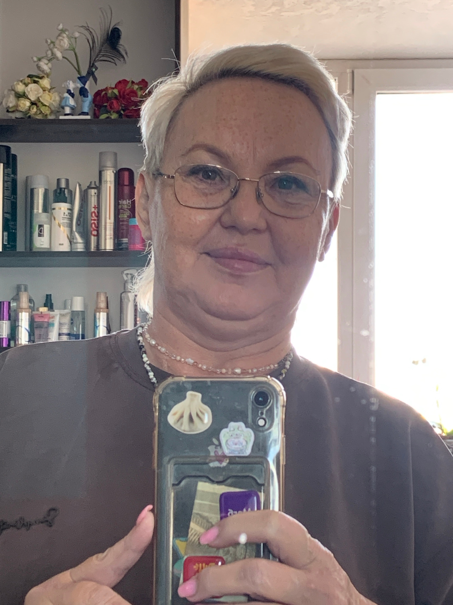 A person with fair skin, wearing glasses and a beaded necklace, is holding a smartphone in front of their face, likely taking a selfie. The smartphone case has stickers on it. The person is wearing a…read more
