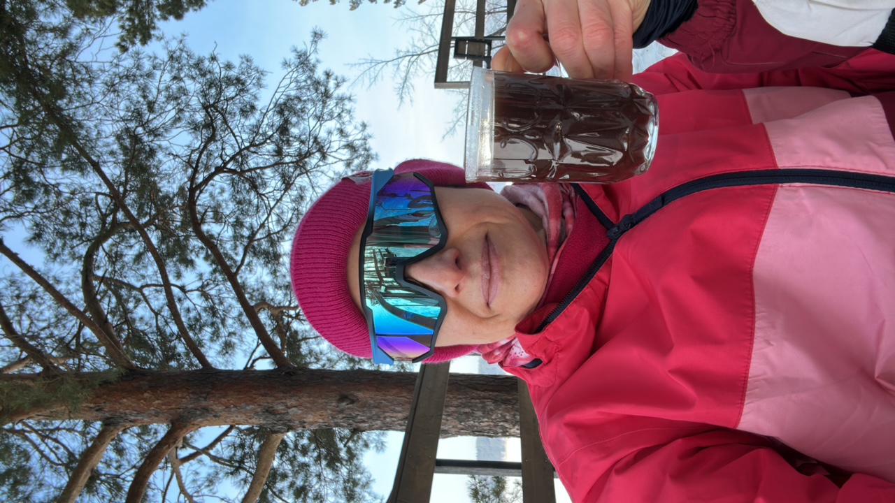 The video shows a worm's-eye view of a forest canopy against a mostly overcast sky. The trees are tall and dense, with mostly bare branches and only a few with leaves. The trees are primarily silhouet…read more