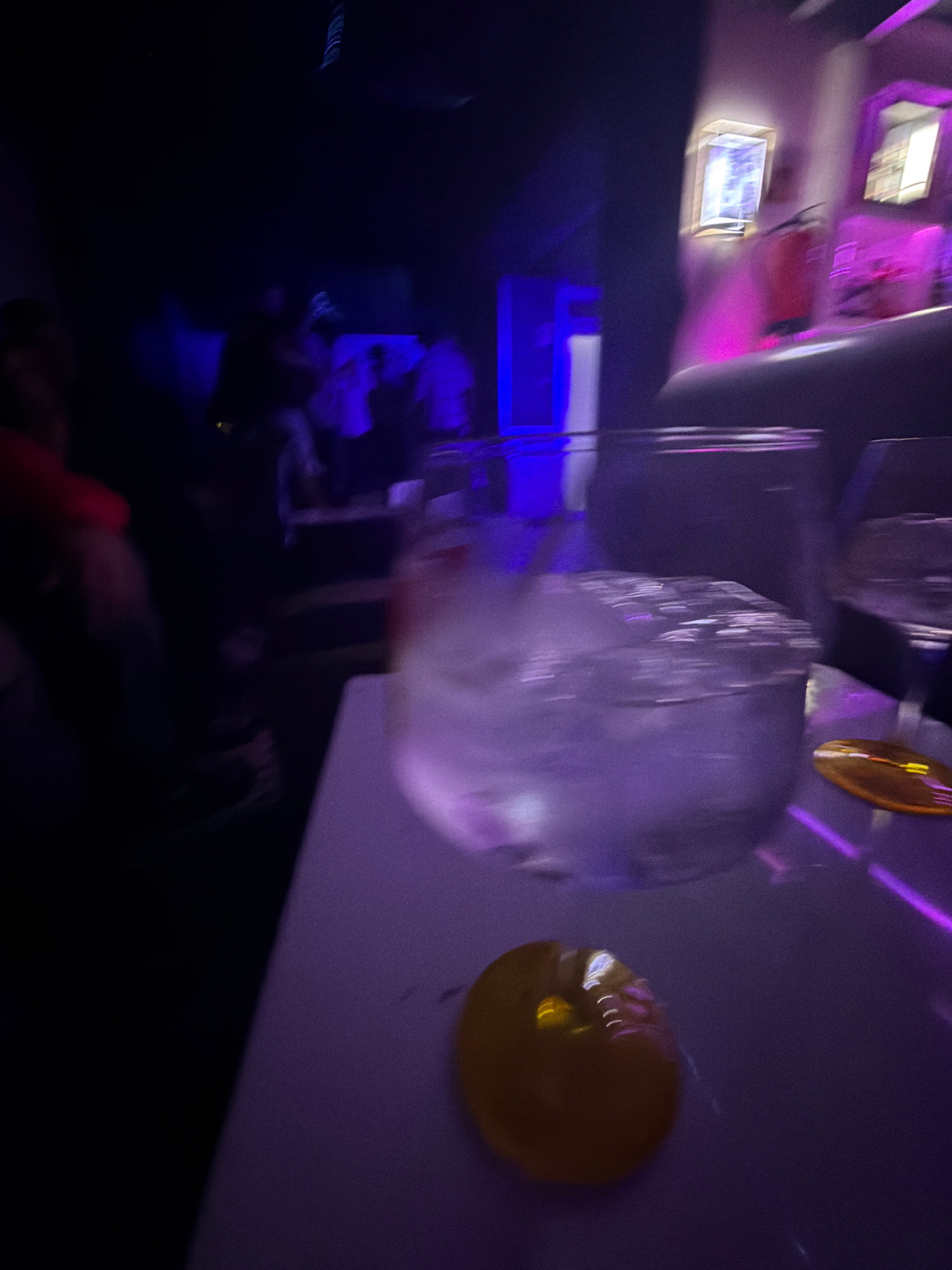 The image appears to be taken inside a venue, possibly a club or bar, in Vila Real, Portugal, judging by the interior design and lighting. The photo is blurry, suggesting motion. **Subjects and Objec…read more