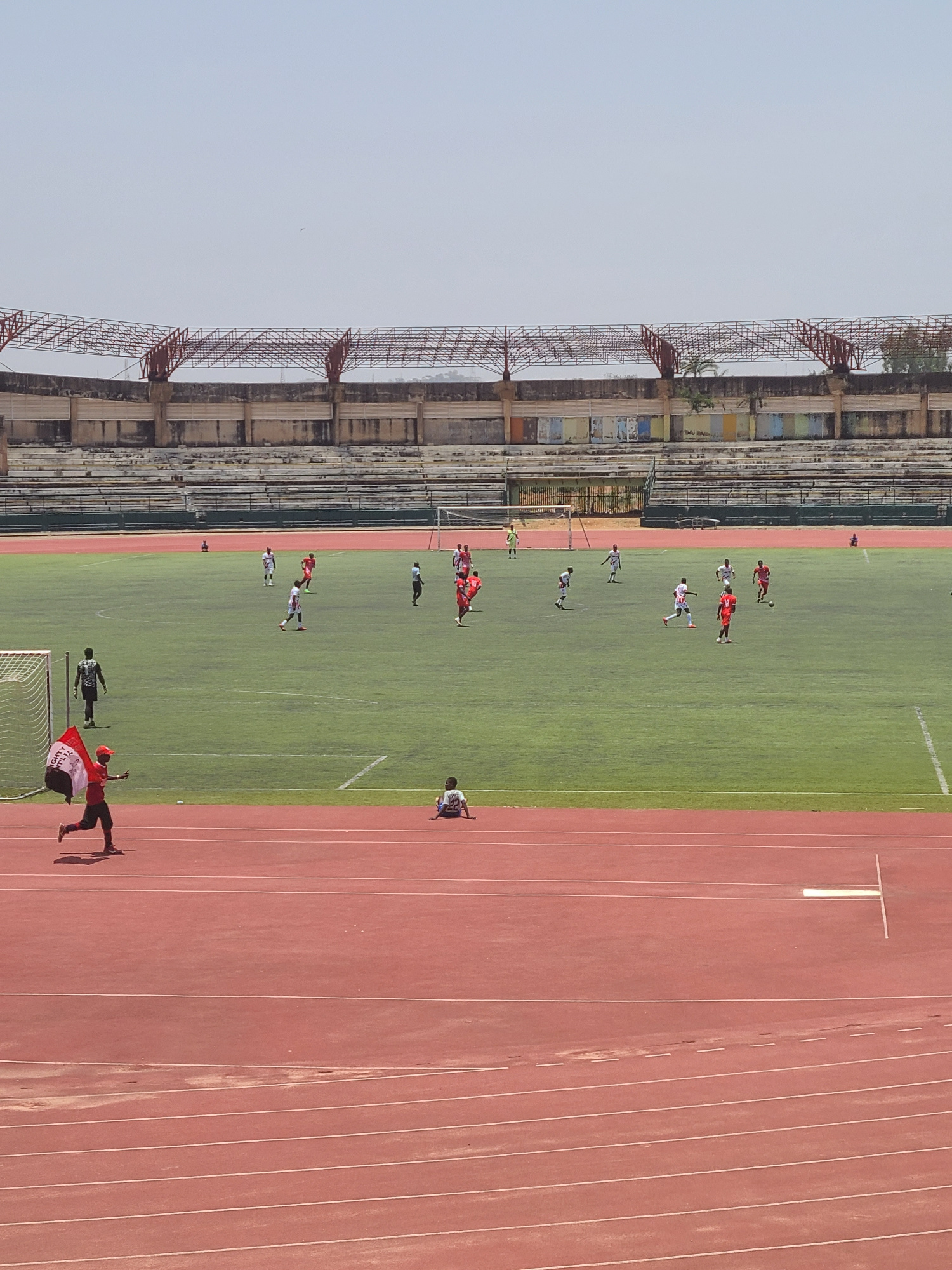 An aerial view captures a football (soccer) stadium under bright daylight, likely in Nigeria, as suggested by the location context. The image is taken from an elevated position, looking down upon theβ¦read more