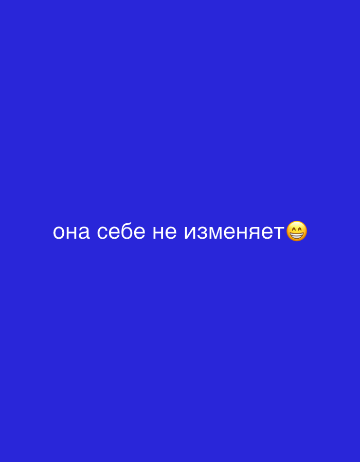 The image features the text "она себе не изменяет😊" in white against a blue background. The text translates to "she does not change herself😊". There is no location information or details about peopl…read more