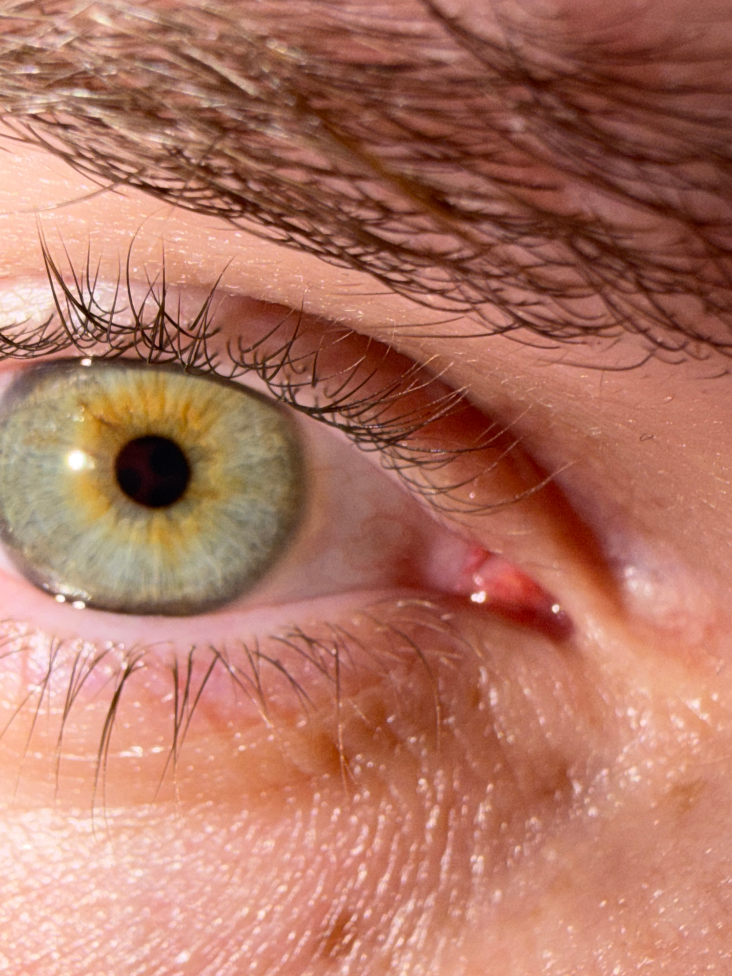 A close-up image focuses on a human eye, featuring eyelashes, skin texture, and the iris. The iris exhibits a blend of yellow and green hues surrounding a dark pupil. There is no discernible location…read more
