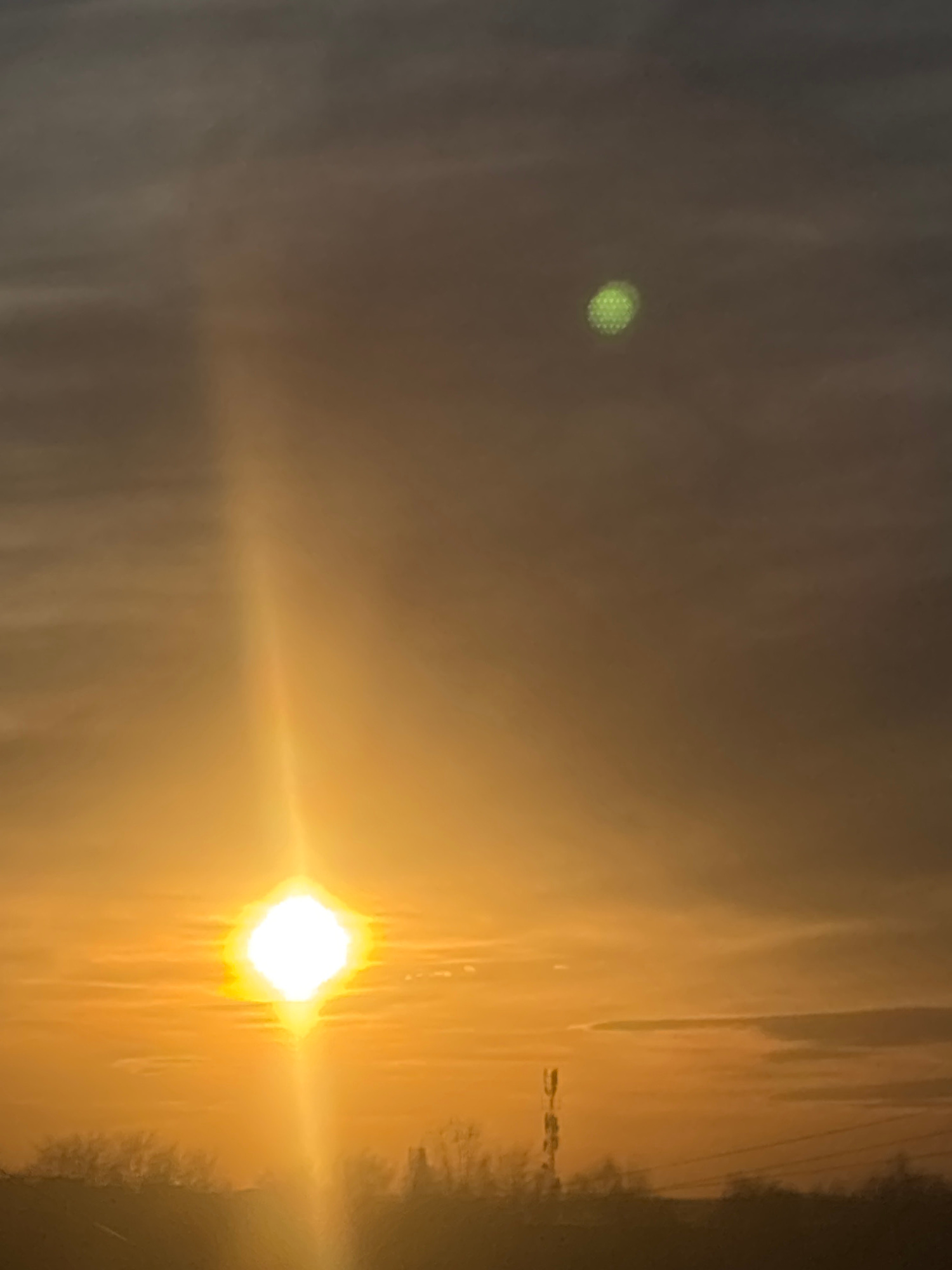 This image displays an outdoor sky scene over the city of Chaikovsky, Russia, characterized by intense solar light, suggesting either sunrise or sunset. A brilliant, white-yellow sun, presenting as a…read more