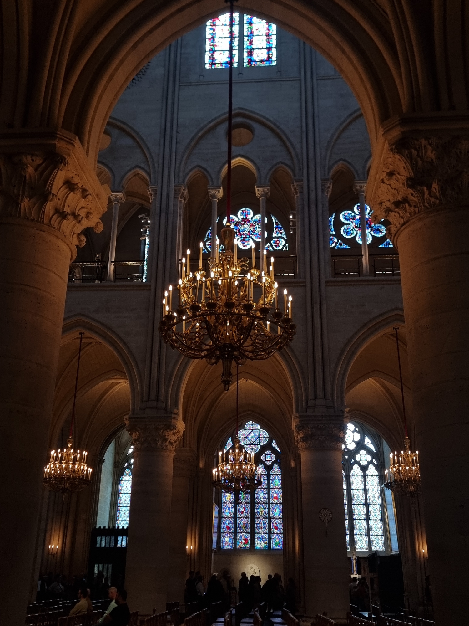 This image captures the majestic interior of a grand cathedral or church, characterized by its towering Gothic architecture. The perspective, which appears to be rotated 90 degrees clockwise, looks ac…read more