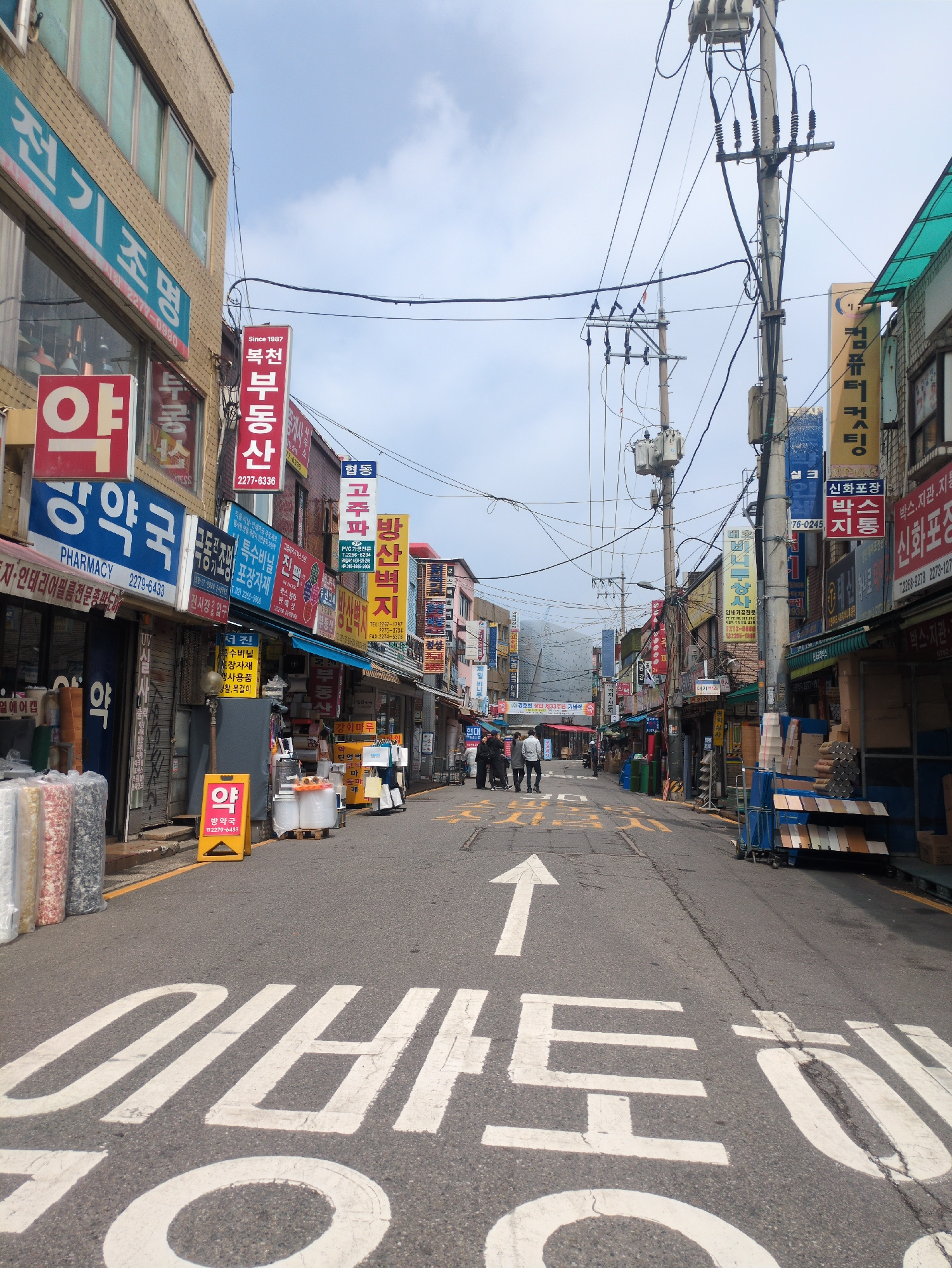 Here's a description of the image: **Location:** The image appears to be taken on a street in Seoul, South Korea. The presence of Korean language signs and business names are strong indicators. **En…read more