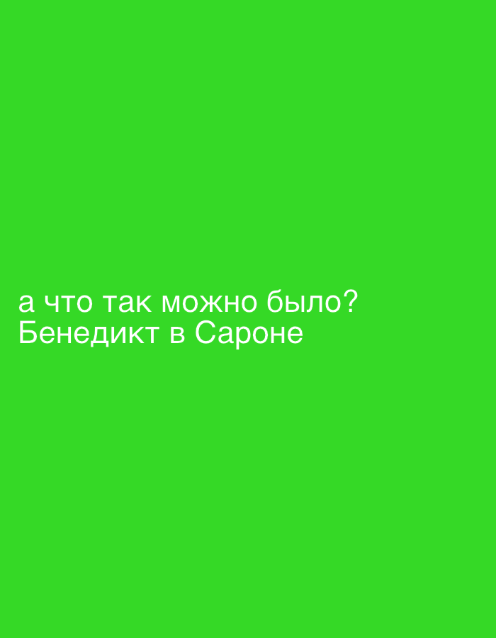 The image is a solid green background with the text "а что так можно было? Бенедикт в Сароне" written in white in the lower left corner. The text translates to "But could it be done like that? Benedic…read more