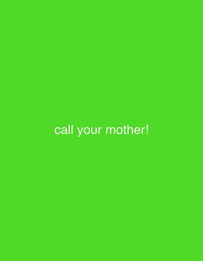 The image is a green screen with the white text "call your mother!" in the center. The location in Perm, Russia, is not applicable as the image does not depict any identifiable location.