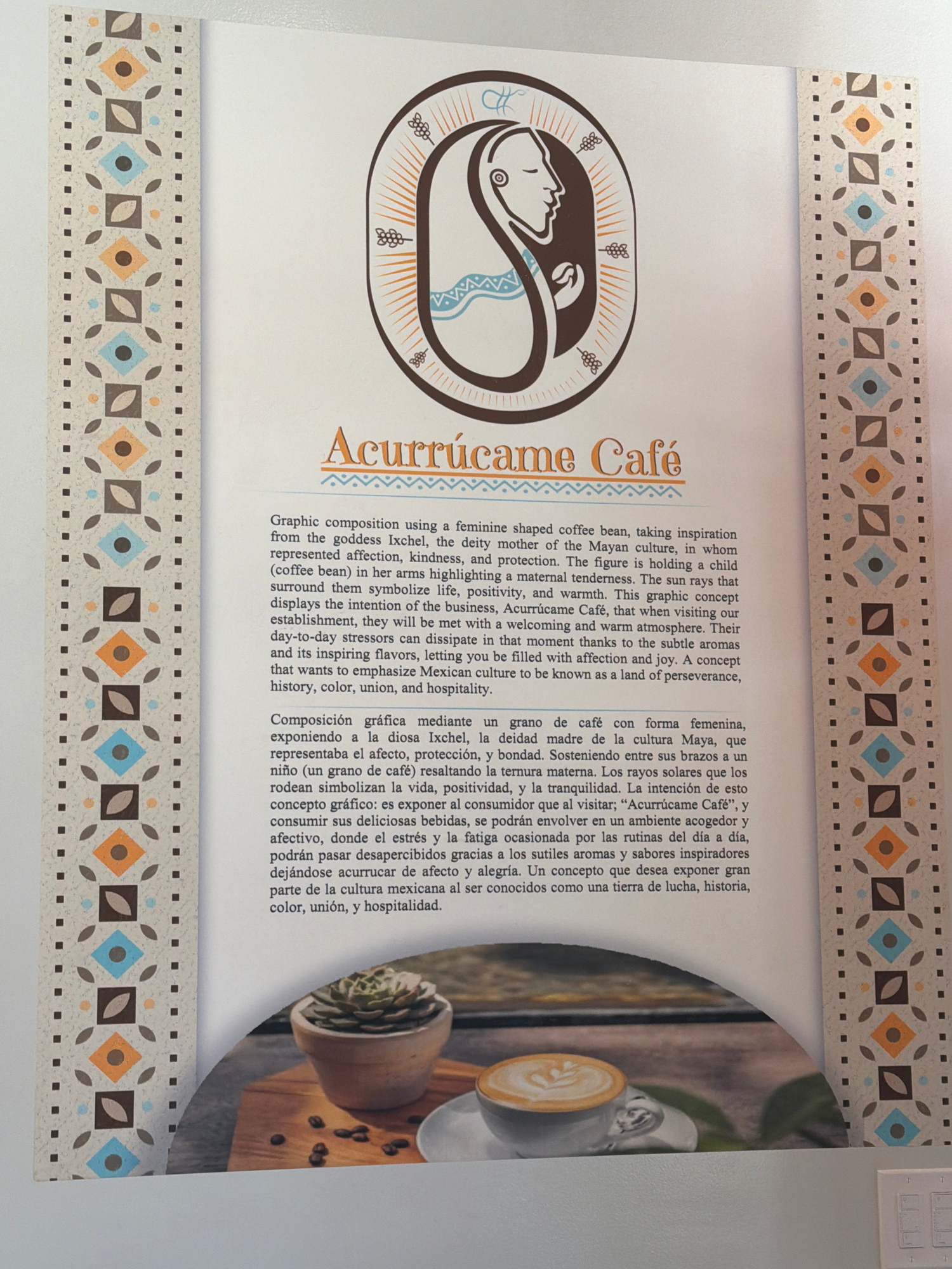 A promotional card or flyer for "Acurrúcame Café" is depicted, featuring a blend of graphic art, text, and photography. The main subject is a central graphic design that portrays a stylized feminine f…read more