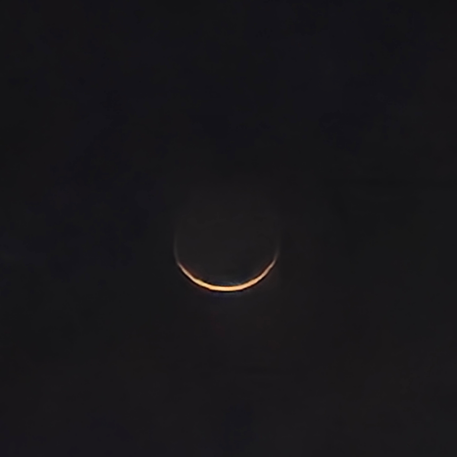 The image shows a crescent moon against a dark sky. There is no information in the image to indicate it was taken in Fez, Morocco, or to describe people, actions, interactions, or objects other than t…read more