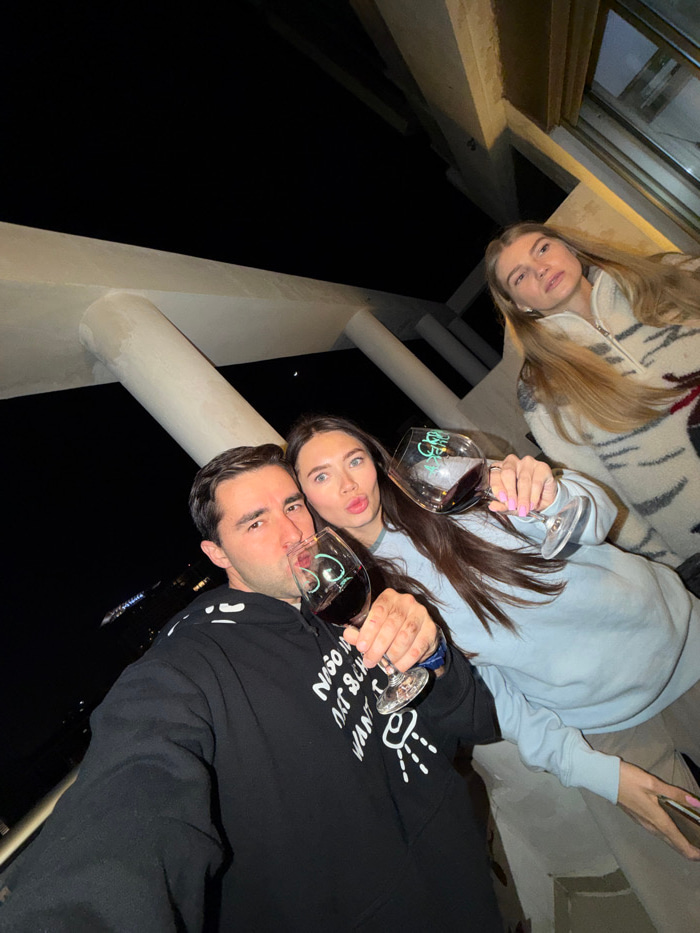 Three people pose for a selfie at night, each holding a wine glass. The person on the left has long blonde hair and wears a light-colored jacket. The person in the center has long brown hair and wearsβ¦read more
