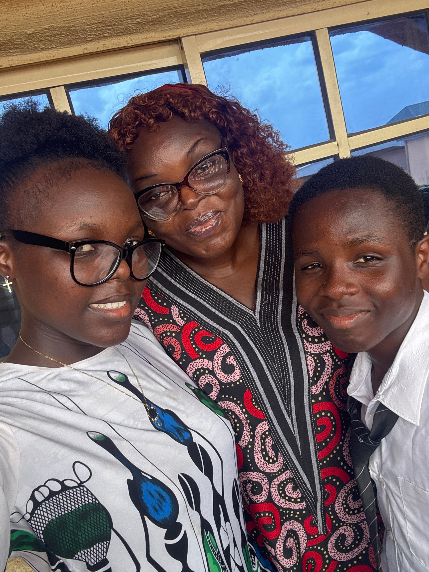Three people are posing for a picture indoors near a window. The person at the top is wearing a white shirt and tie, lying on the person in the middle, who is wearing glasses. The person at the bottom…read more