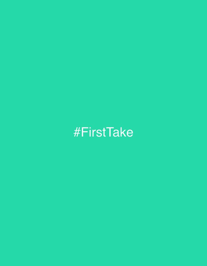 The image displays a solid, uniform teal-green background. Centered horizontally and vertically on this background is white text reading "#FirstTake". No other subjects, objects, people, actions, inte…read more