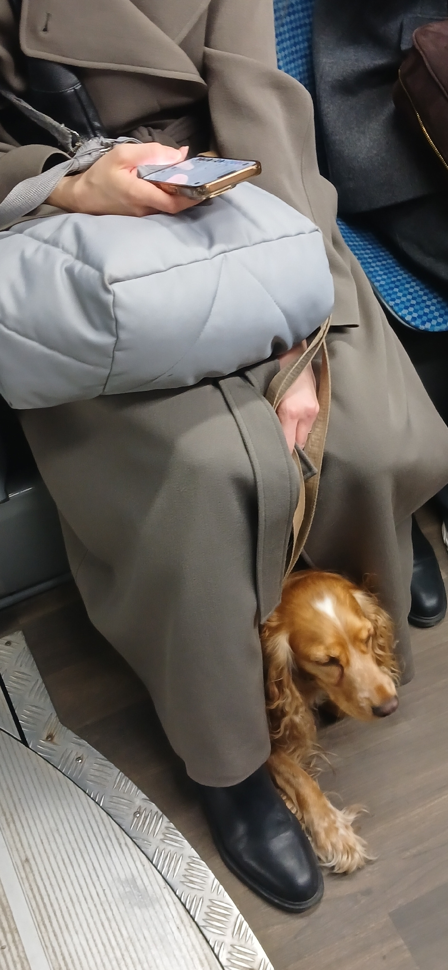 The scene is an overhead shot inside what appears to be a train or subway car, potentially in Moscow, Russia, given the presence of Cyrillic writing on a sign in the blurry background (not fully visib…read more