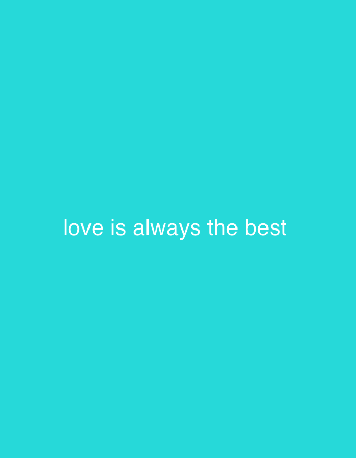 The image displays the text "love is always the best" in white font against a solid turquoise background. The text is centered horizontally and positioned in the lower portion of the image. There are…read more