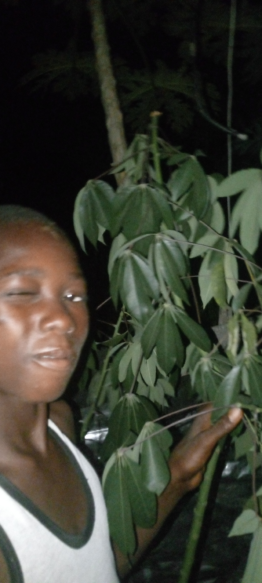 A close-up, dimly lit photograph taken at night shows a person, possibly male, with dark skin and short hair, wearing a white tank top with dark trim. The person's face is partially illuminated, showi…read more