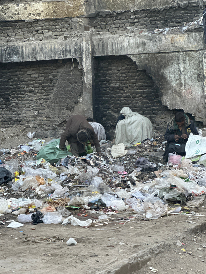 This image depicts an outdoor scene in Quetta City Tehsil, Pakistan, characterized by a substantial accumulation of refuse against a backdrop of urban infrastructure. The background features a severel…read more