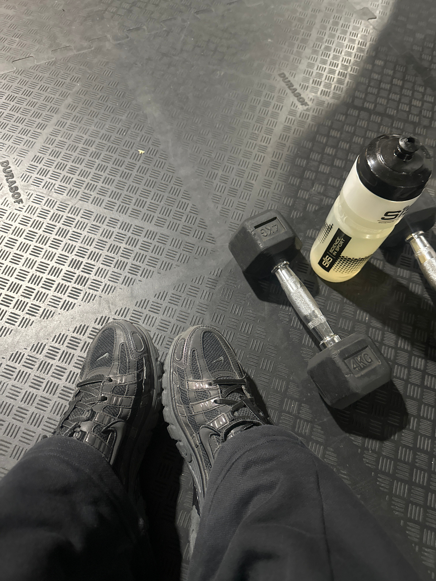 The scene depicts an indoor gym or fitness environment located within the city of Tonbridge and Malling, United Kingdom. The flooring consists of interlocking dark grey or black rubber matting with a…read more