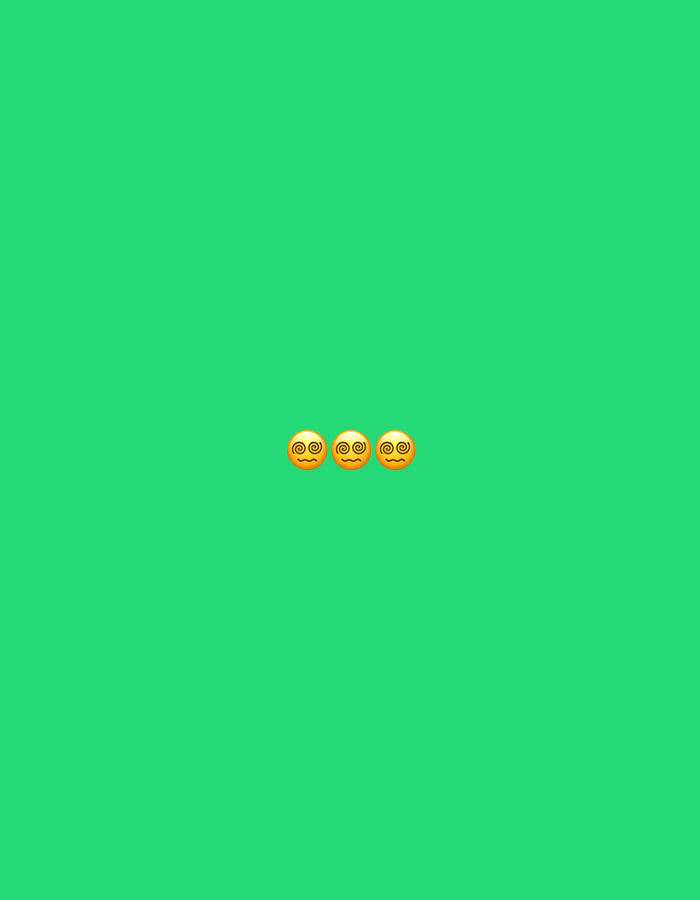 The image shows a green background with three dizzy face emojis in the center.