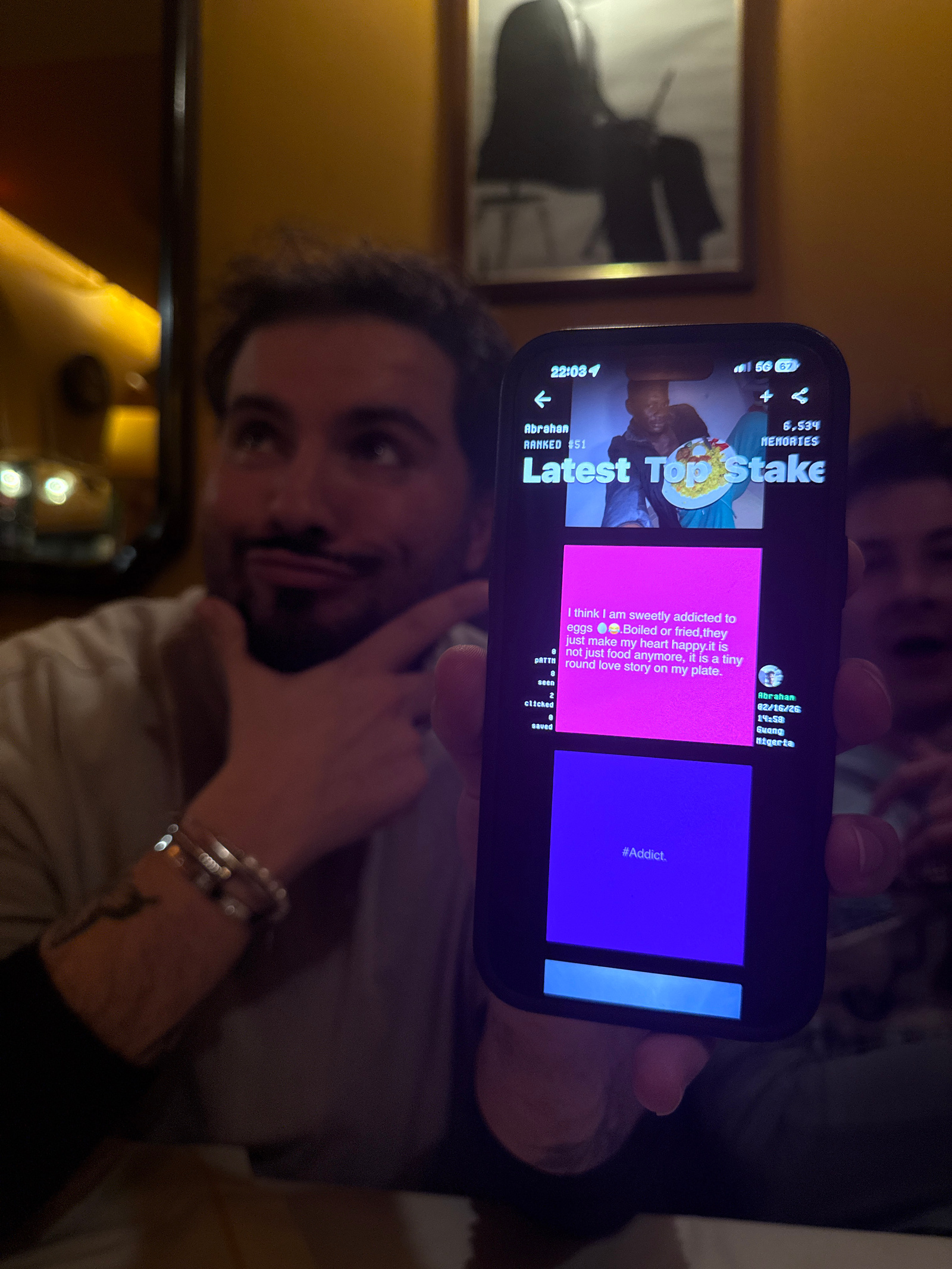 The image captures a casual, indoor scene, likely in the evening given the warm, artificial lighting. The primary subject is a person, appearing to be a man with dark hair and a beard or stubble, hold…read more
