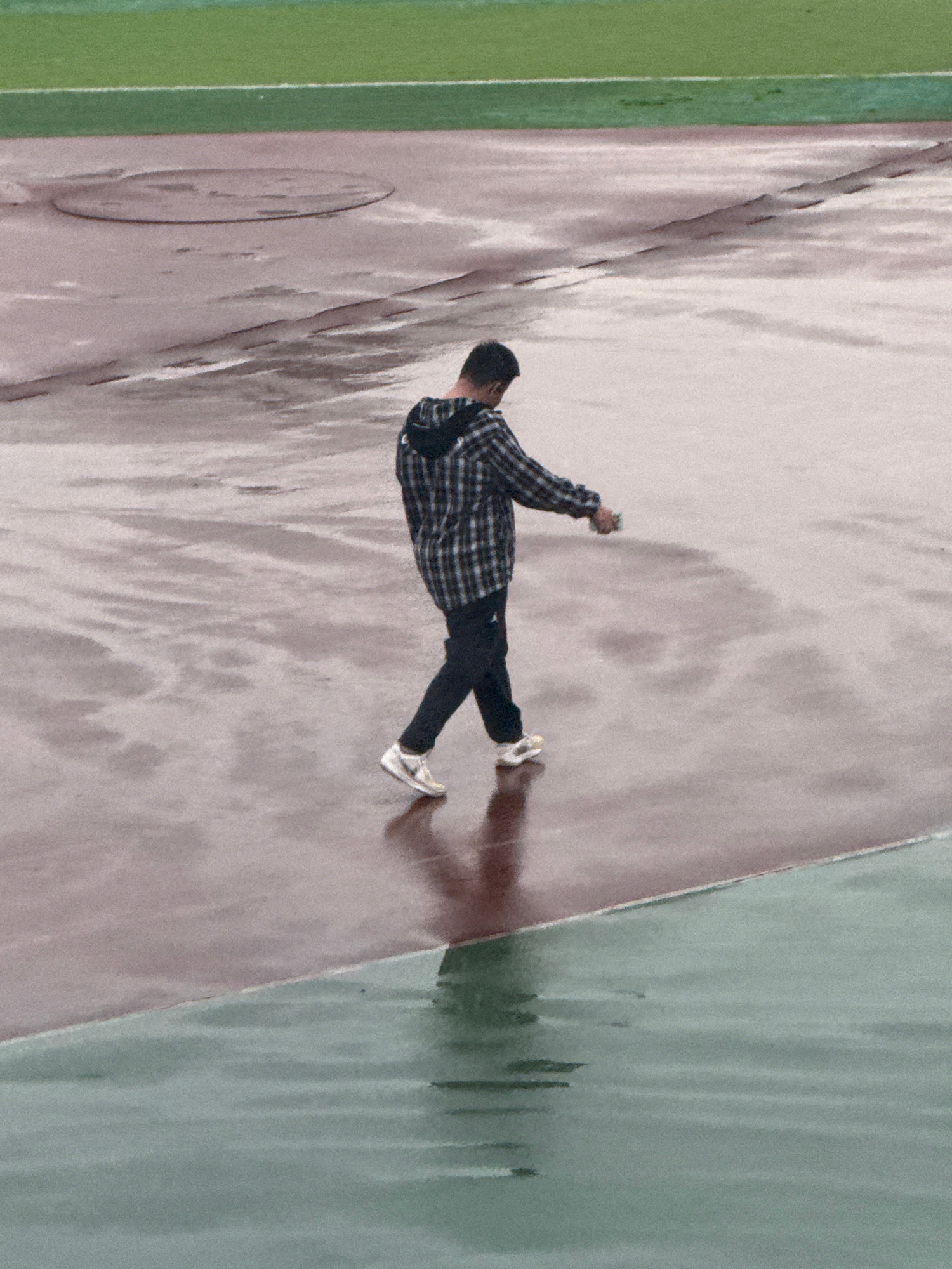 A photo taken outdoors in Zhongtun, China, presents a single individual, a male with black hair, captured from an elevated perspective. He is positioned on what appears to be a public thoroughfare or…read more