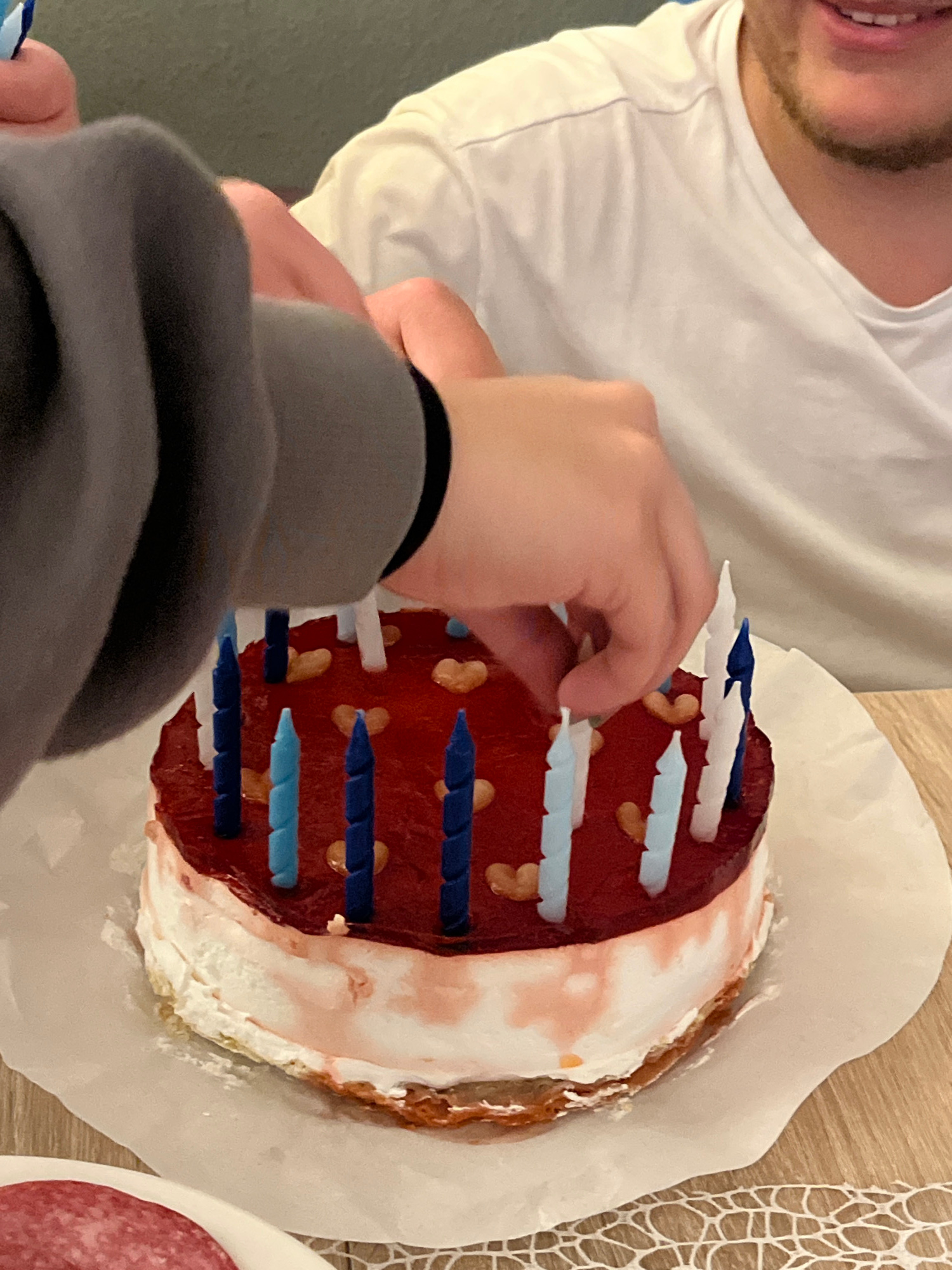 Here's a detailed description of the image: **Scene:** An indoor setting, likely a home, with a person wearing a gray sweatshirt partially visible in the foreground. Another person wearing a white t-…read more