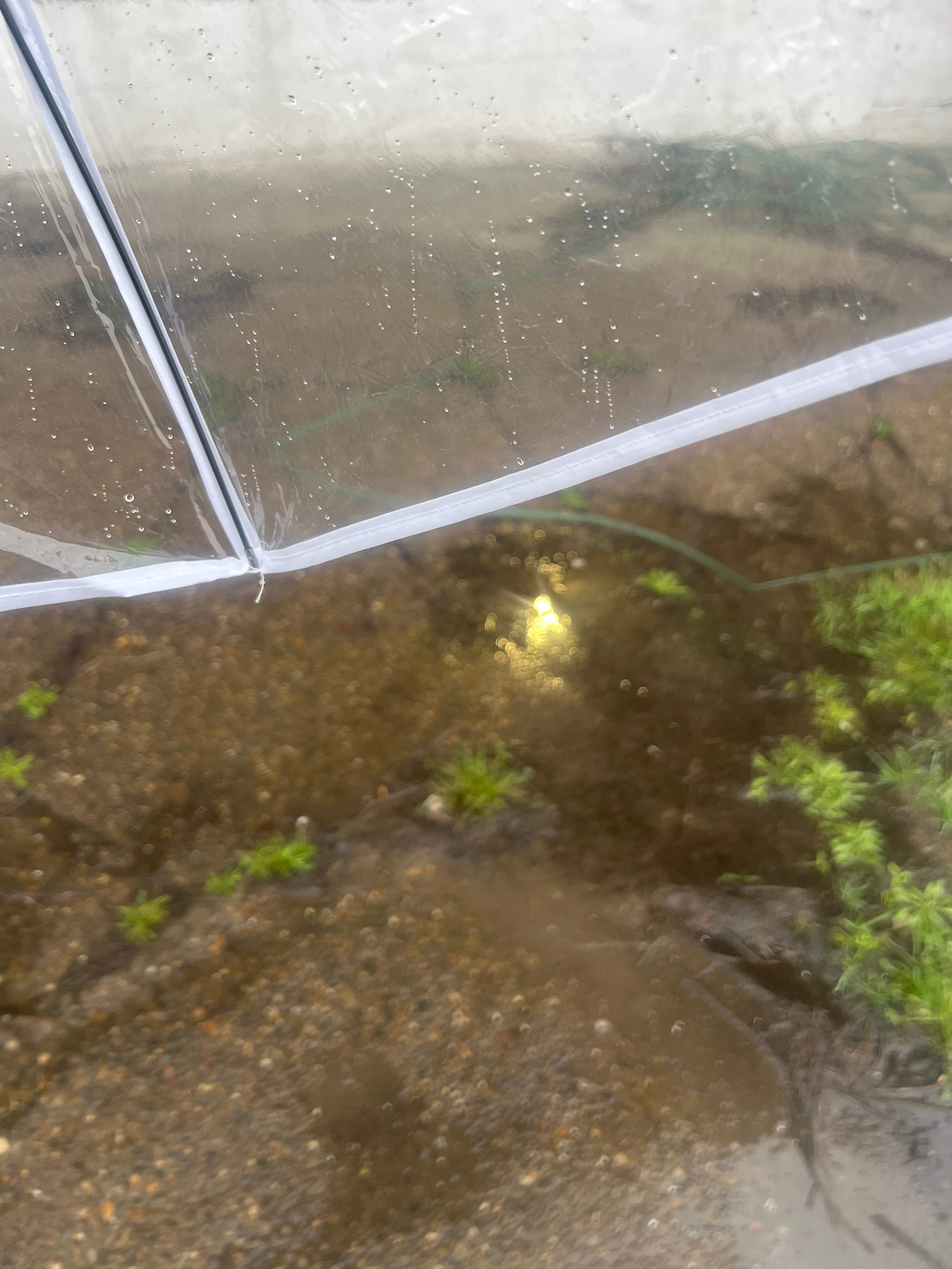 A photograph taken in Chaikovsky, Russia shows the lower portion of a translucent, possibly plastic, rectangular structure with white trim. The view through the translucent material shows a murky, gra…read more