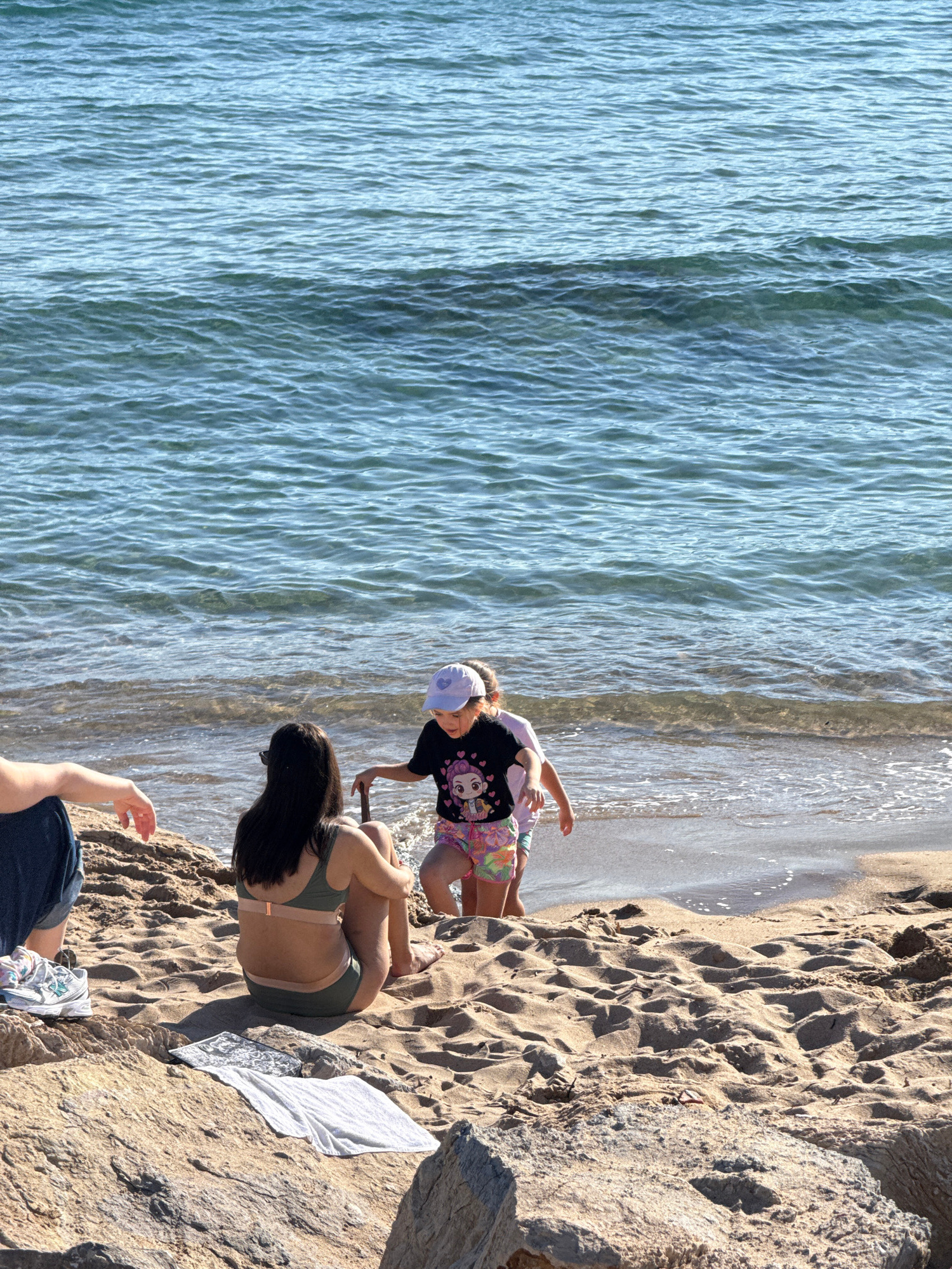 The image captures a scene on a beach, likely in Cannes, France, as evidenced by the coastal environment and possible Mediterranean location. Two individuals, one adult and one child, are interacting…read more