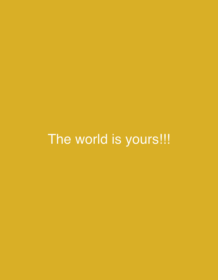 A mustard-yellow background with the white text "The world is yours!!!" in the center. The image does not contain enough visual information to place it in a specific location like Jos, Nigeria.