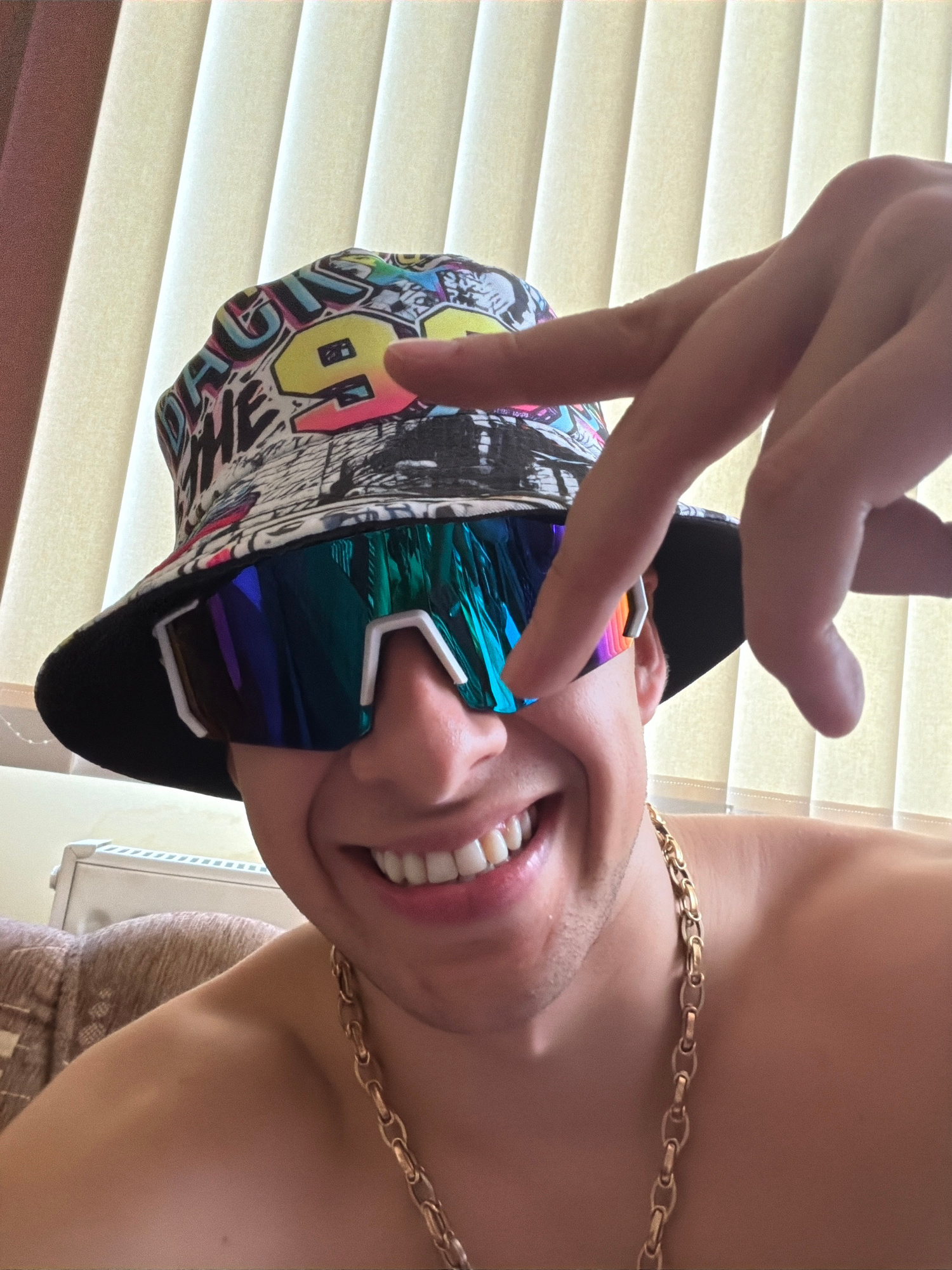 An upside-down, close-up shot captures a person's head and upper torso, illuminated by natural light filtering through horizontal window blinds in the background. The person is wearing a multi-coloredβ¦read more