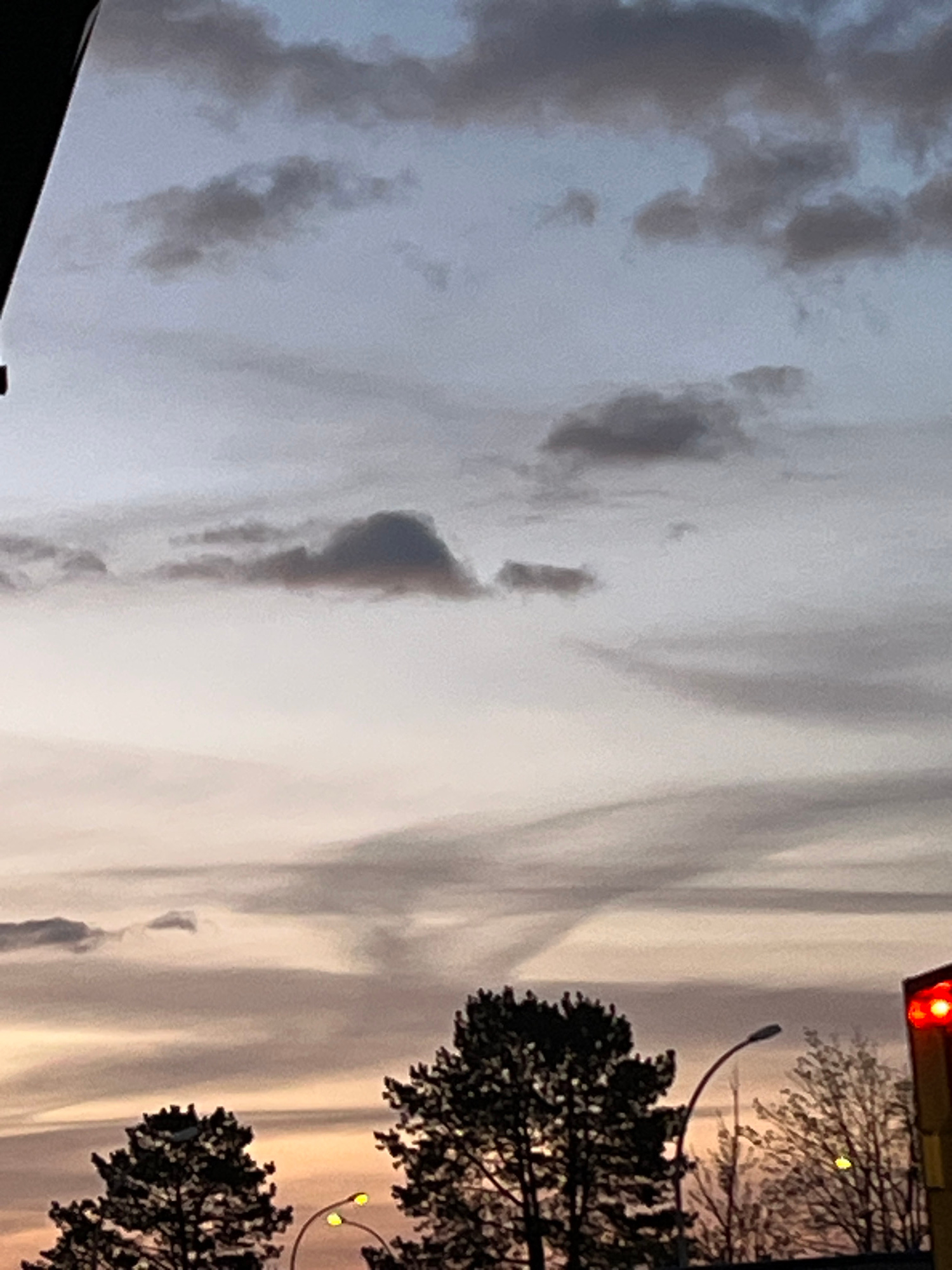 The media file presents an outdoor scene dominated by a cloudy sky, likely captured during dawn or dusk. The sky exhibits a gradient of colors, transitioning from darker, dense grey clouds on the leftβ¦read more