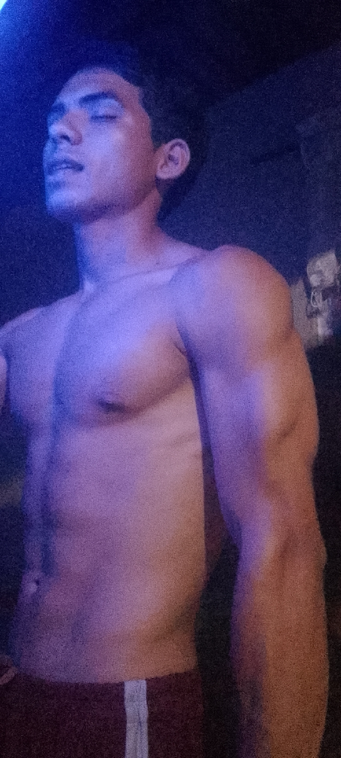 A young adult male, presumably located in Juan Griego, Venezuela, is depicted from the chest up against a dark, undifferentiated background. He is shirtless, displaying a muscular physique, including…read more
