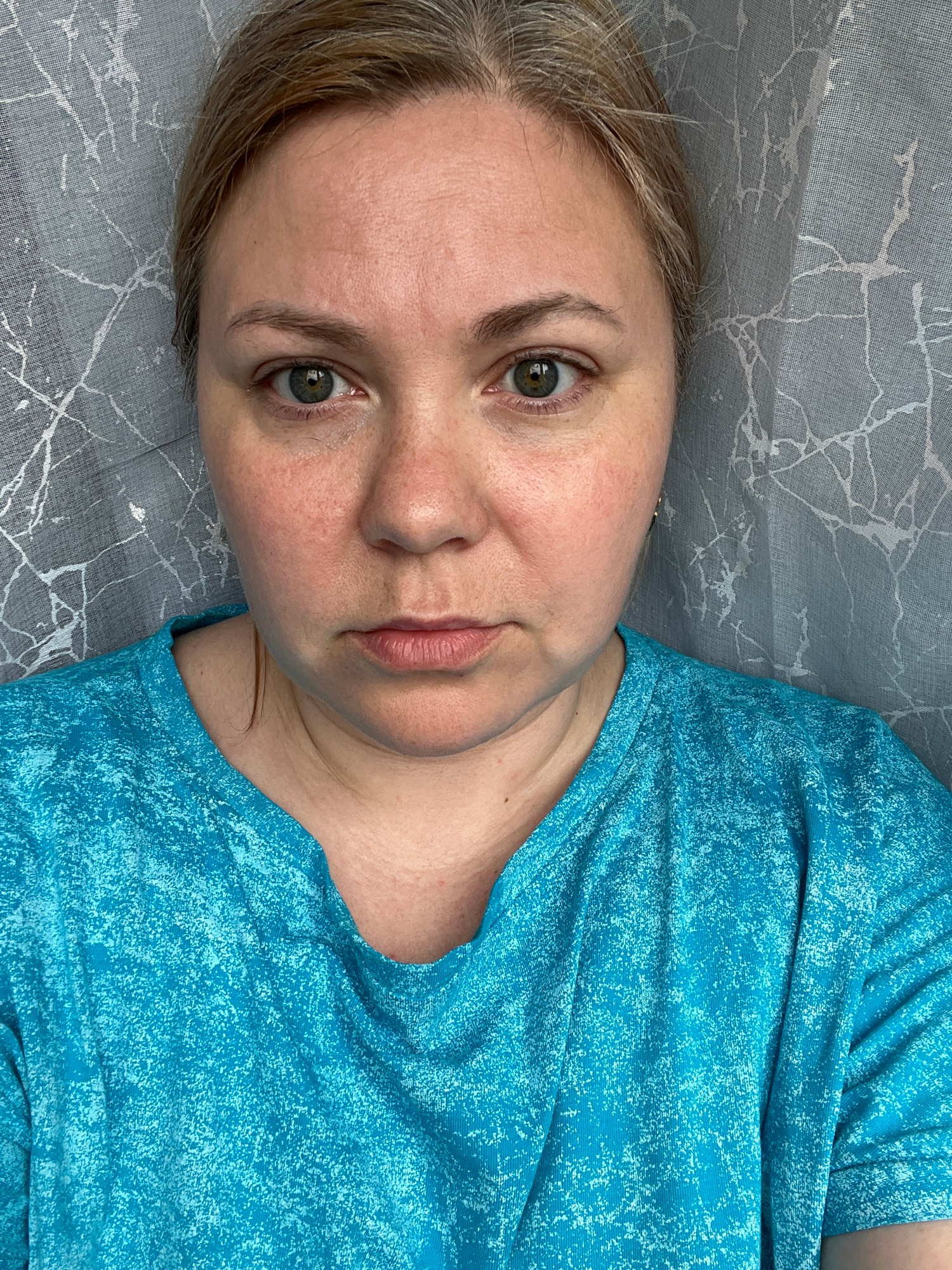 A person with blonde hair and green eyes is lying down, wearing a blue shirt. They are positioned on a gray surface with a light-colored, fractured pattern. The location is unknown and is not depicted…read more