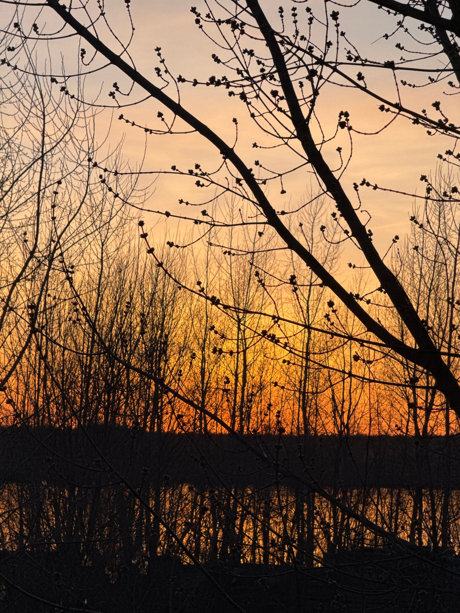 This image, viewed in landscape orientation, depicts a serene natural scene at either sunrise or sunset, likely in Chaikovsky, Russia. The sky, forming the backdrop, presents a warm gradient of colorsβ¦read more