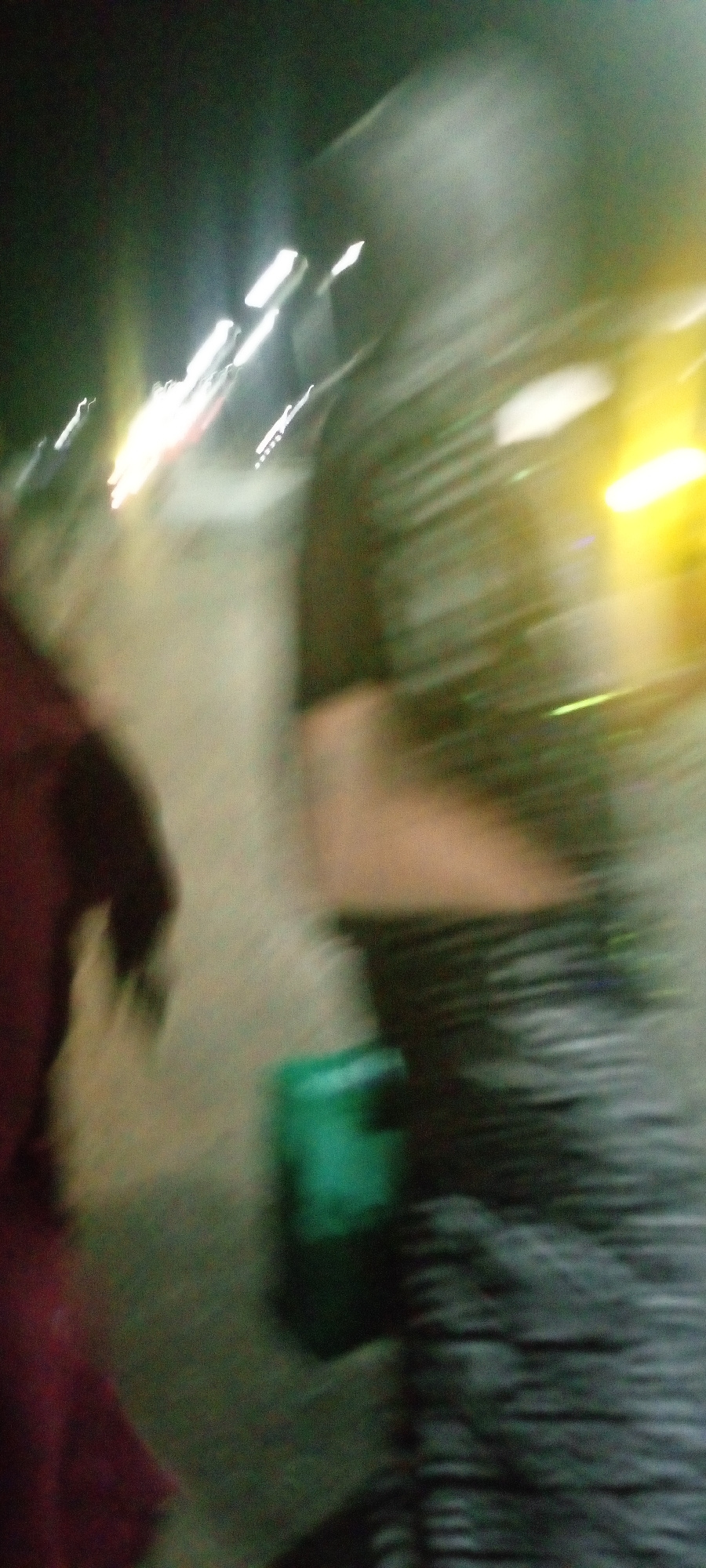 The image appears to be taken at night in Adankolo, Nigeria. The setting is urban with street lights visible in the background. Two blurry figures are present, one wearing a dark red garment on the le…read more