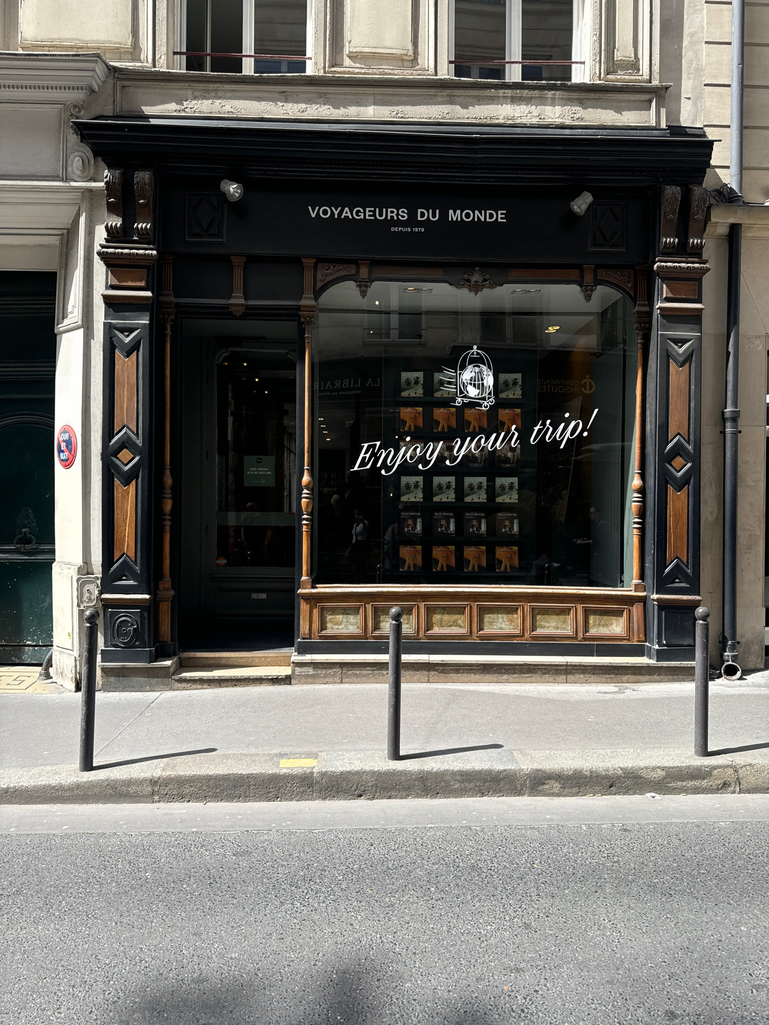 This media file captures the detailed facade of a shopfront in Paris, France, during daytime under clear, sunny weather. The building displays classic Parisian architecture with light-colored stone or…read more