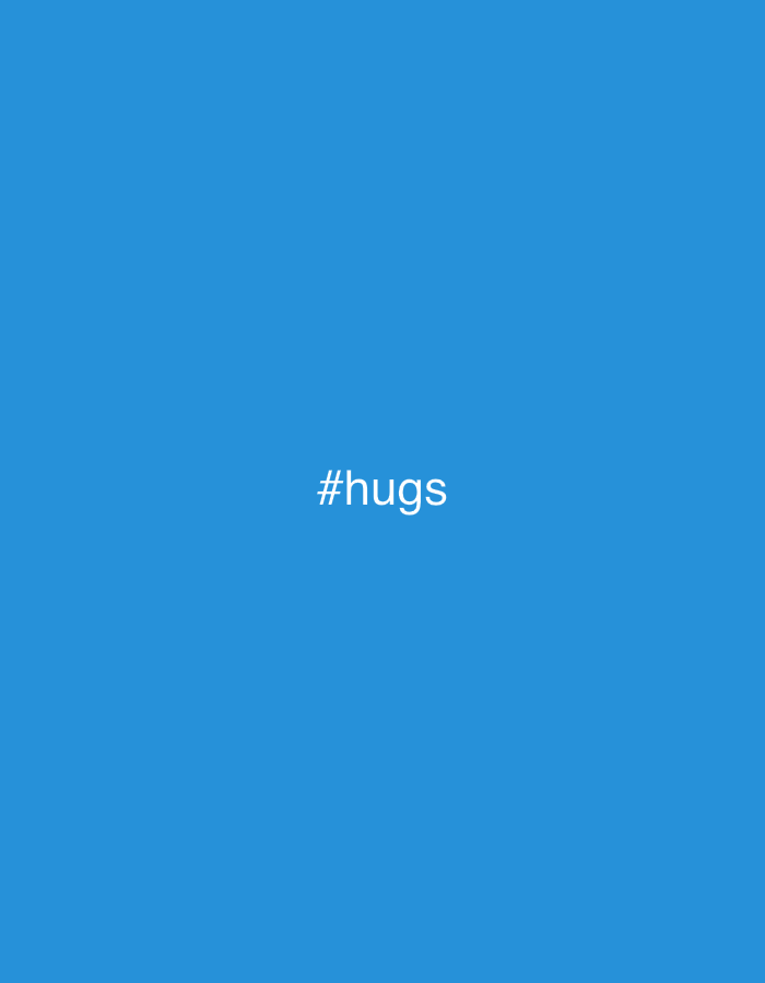 The image is a simple, centered graphic with the text "#hugs" in white on a solid blue background. There is no discernible location or city shown in the image. The scene is not set in Vienna, Austria,…read more