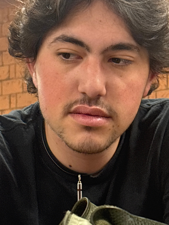 The image displays a close-up portrait of a young male individual, estimated to be between 18 and 25 years old, situated in Mexico City, Mexico. He possesses dark, wavy hair, dark eyes, and prominent…read more