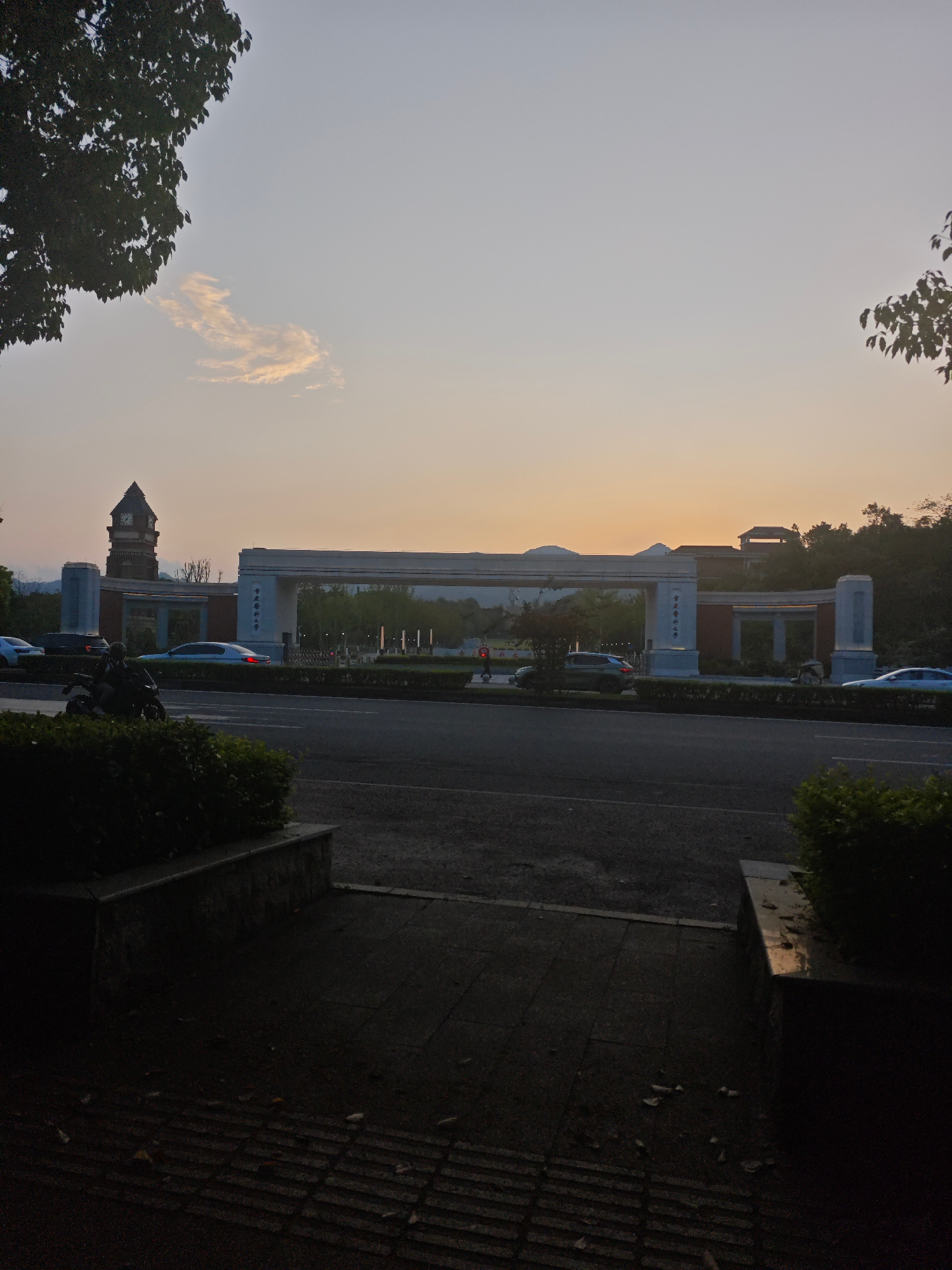 The image depicts a wide street in the Chongqing High-tech Zone, China, facing a large, decorative entrance gate of a university or significant institution. A clock tower is visible to the left of the…read more