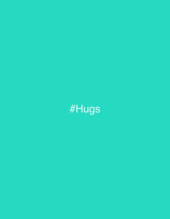 The media file displays a plain background rendered in a vibrant teal color. Centered on this solid background is the white text "#Hugs". There are no people, objects, or any discernible scene or acti…read more