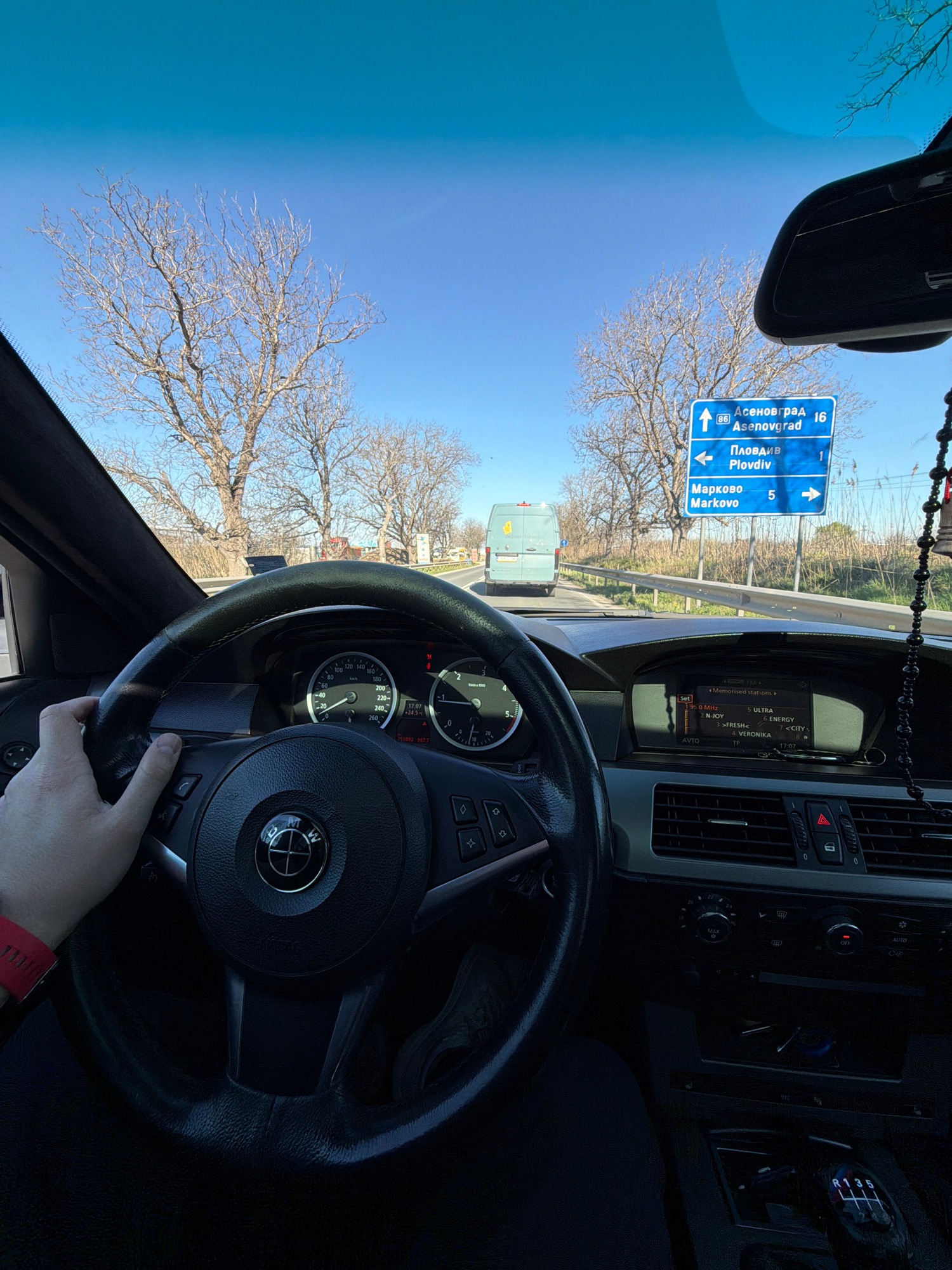 The photograph shows a person driving a car on a road near Plovdiv, Bulgaria. A road sign indicates directions and distances: Asenovgrad is 16 kilometers in one direction, Plovdiv is 1 kilometer in an…read more