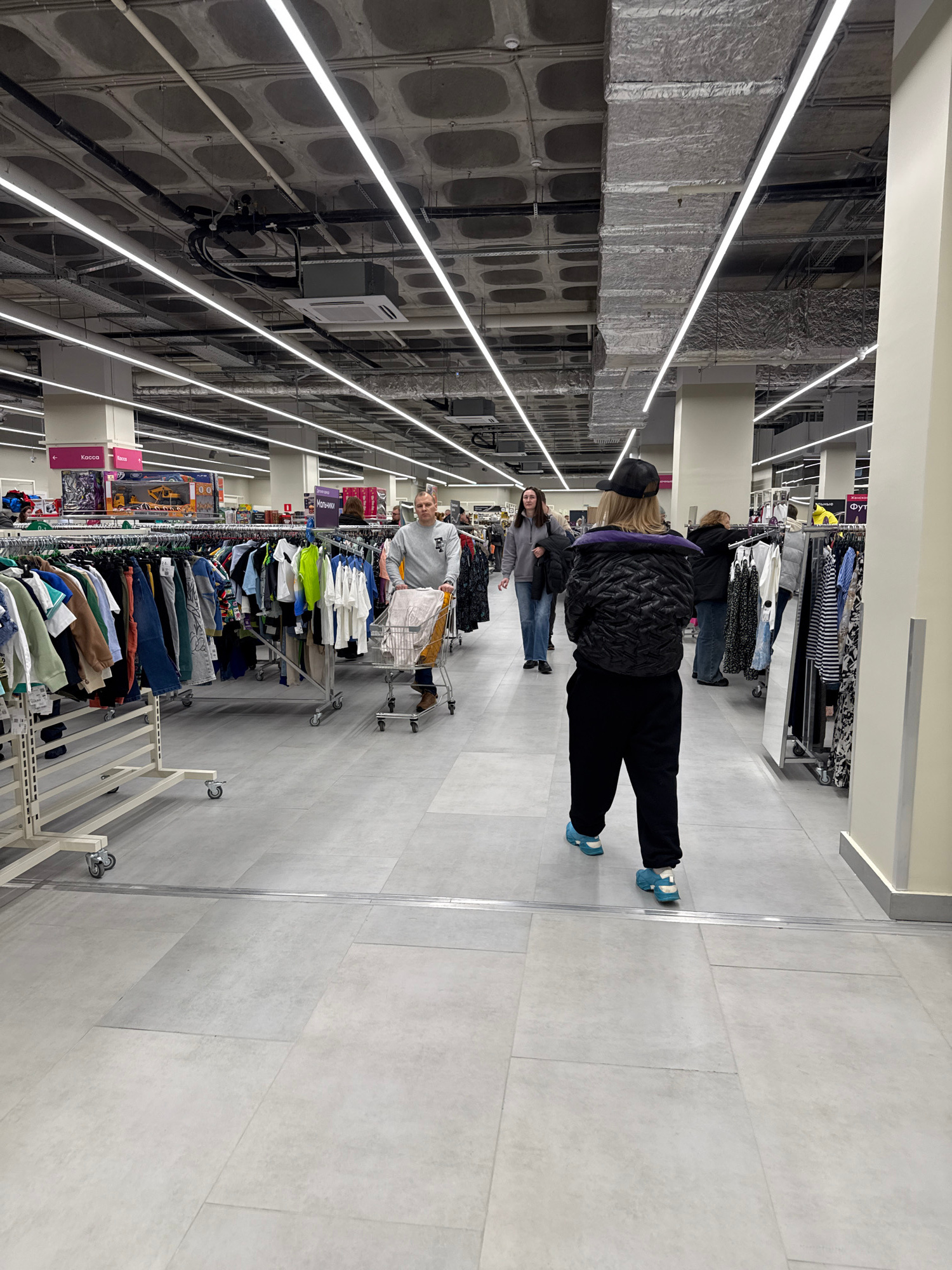 The image shows an interior view of a retail space, potentially a clothing store. The location is identified as Izhevsk, Russia. The space is illuminated by linear overhead lighting fixtures, creatin…read more