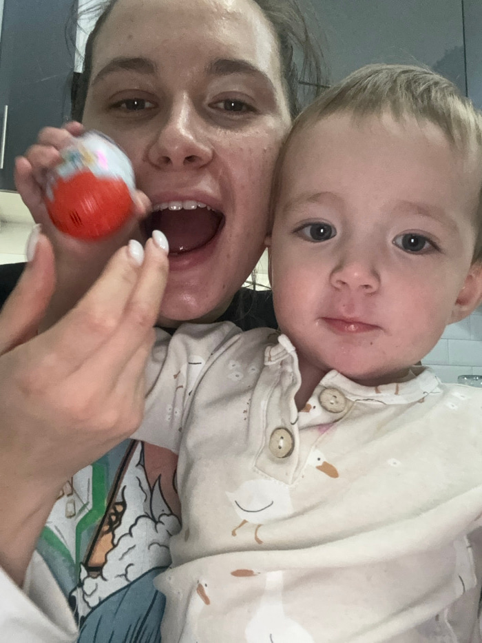 An adult female and a young child are depicted in a close-up, chest-up indoor portrait, located in the city of Odintsovo, Russia. The adult, positioned left of center, has dark hair, a fair complexion…read more
